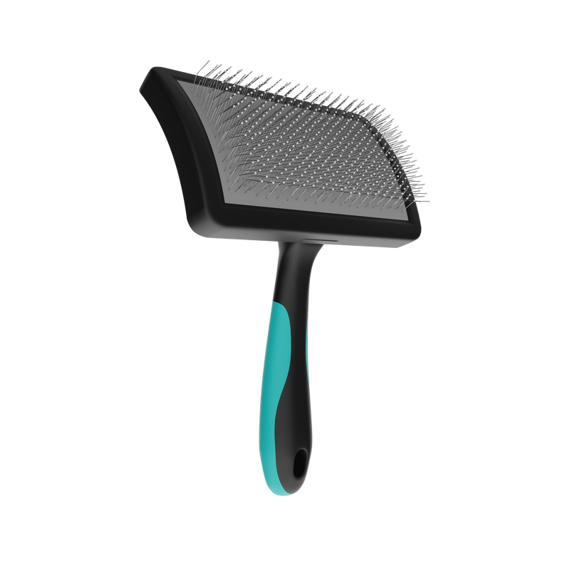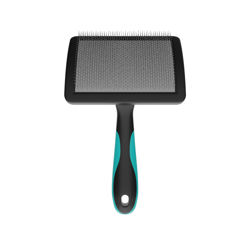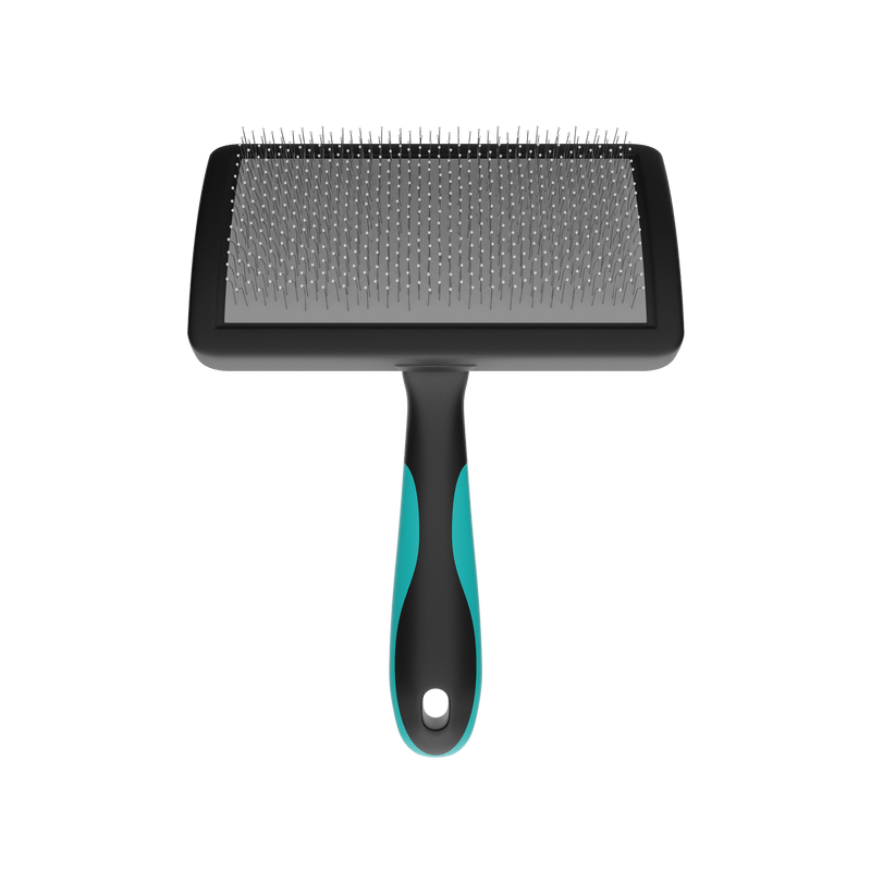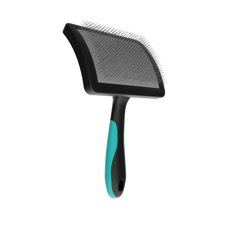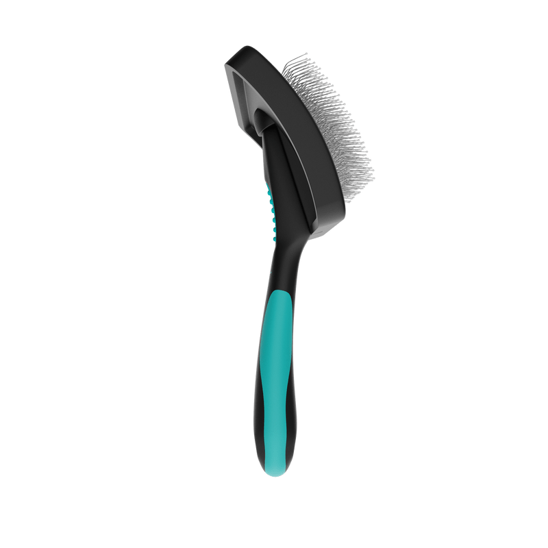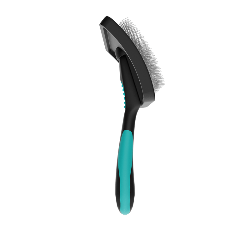 Além de alisar o pelo do animal, a Rasqueadeira Pet Curva Média com Bolinhas Propetz proporciona uma massagem agradável na pele, sem risco de machucar, devido aos seus pinos em aço inoxidável flexíveis e com a ponta protegida com pinos emborrachados.