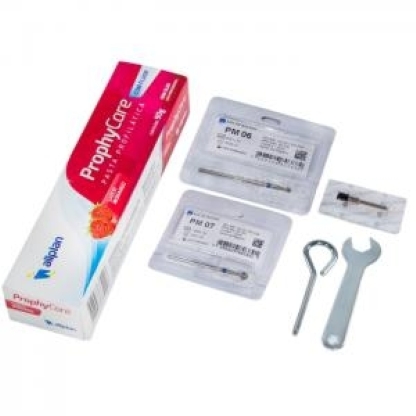 Acompanha pedal acelerador, broca, pasta profilática e escova de polimento.