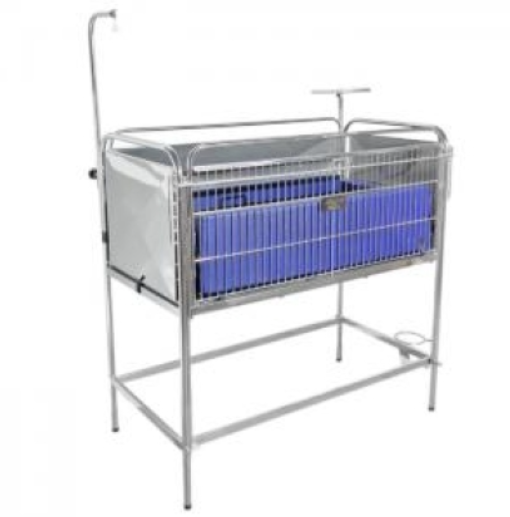 Fabricado totalmente em aço inoxidável acompanha suporte para cilindro de 3 litros na parte inferior,prateleira para acomodar equipamentos, colchão protetor na cor azul e suporte para soro lateral com altura regulável.