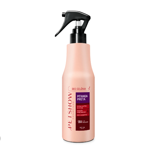 A colônia Pitanga Preta da pet show foi especialmente desenvolvida para perfumar suavemente seu animal sem causar irritações na pele ou mucosas, proporcionando uma finalização especial após o banho. Sua essência, famosa no mercado de cosméticos nacional, nativa da Floresta Atlântica e ocorrendo naturalmente desde o estado do Espírito Santo até Santa Catarina, deixa o pelo do animal com um cheiro muito agradável e suave.