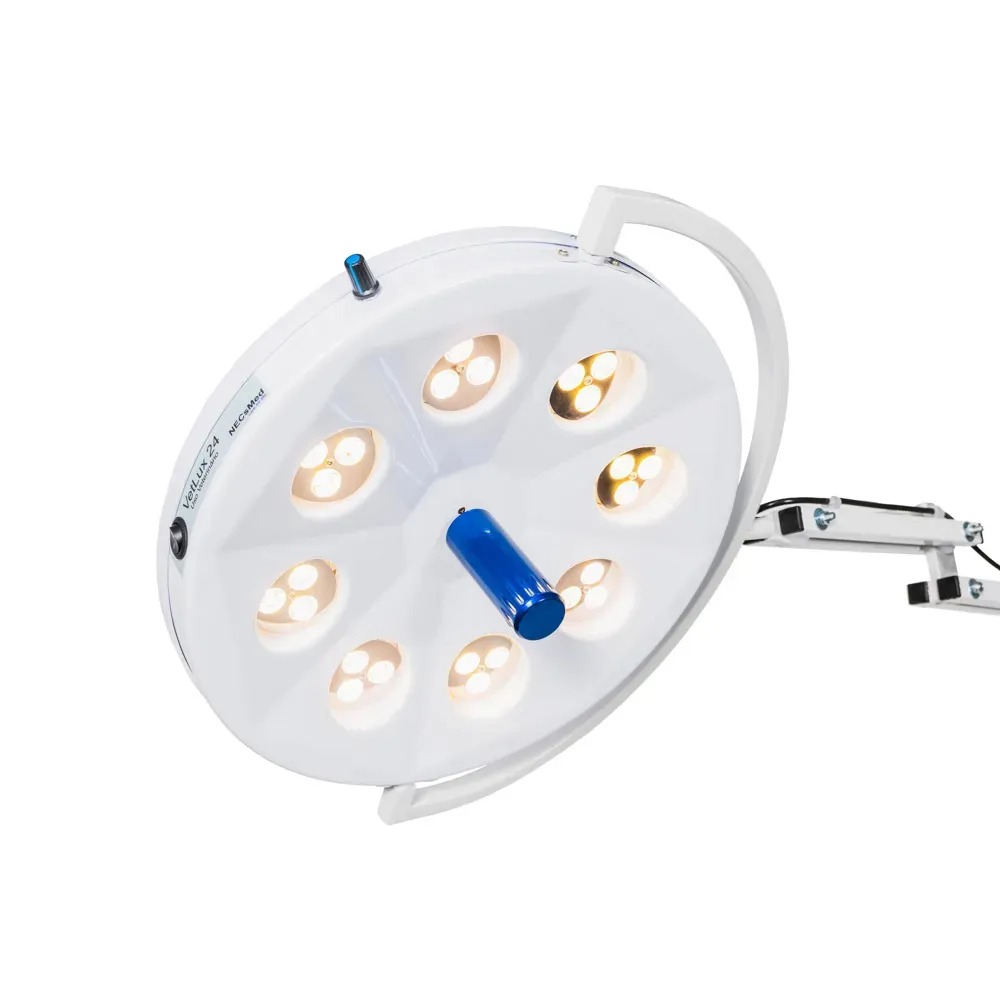 24 Led`s 40.000 lux 38 cm de cúpula Manopla autoclavável em alumínio anodizado Articulação nos 3 eixos Bivolt automático Controle de luminosidade Vida útil +/- 20 mil horas Uso exclusivo veterinário