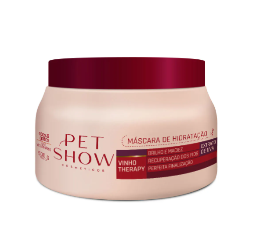 A Máscara de Hidratação Vinho Therapy Pet Show, foi especialmente desenvolvida para proporcionar uma perfeita finalização. Sua fórmula composta de poderosos agentes hidratantes e nutritivos como a Vits Vinifera Oil que promove excelente hidratação, nutrição e recuperação dos fios dando mais brilho e maciez com uma agradável fragrância. O Vinho Therapy é uma essência Oriental Amadeirada Compartilhável. As notas de topo são, Cedro, Mirra e Patchouli ou Cinza.