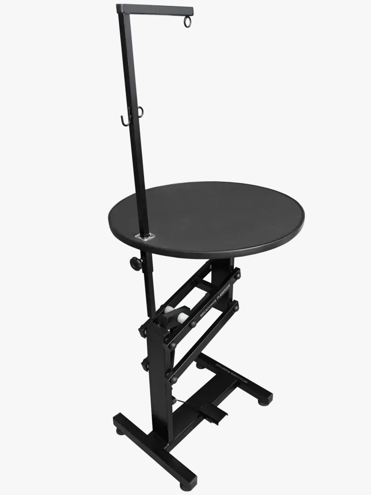 A Mesa de Tosa Redonda Pneumática Plenitude com base giratória foi desenvolvida para auxiliar o profissional na rotina do banho e tosa.