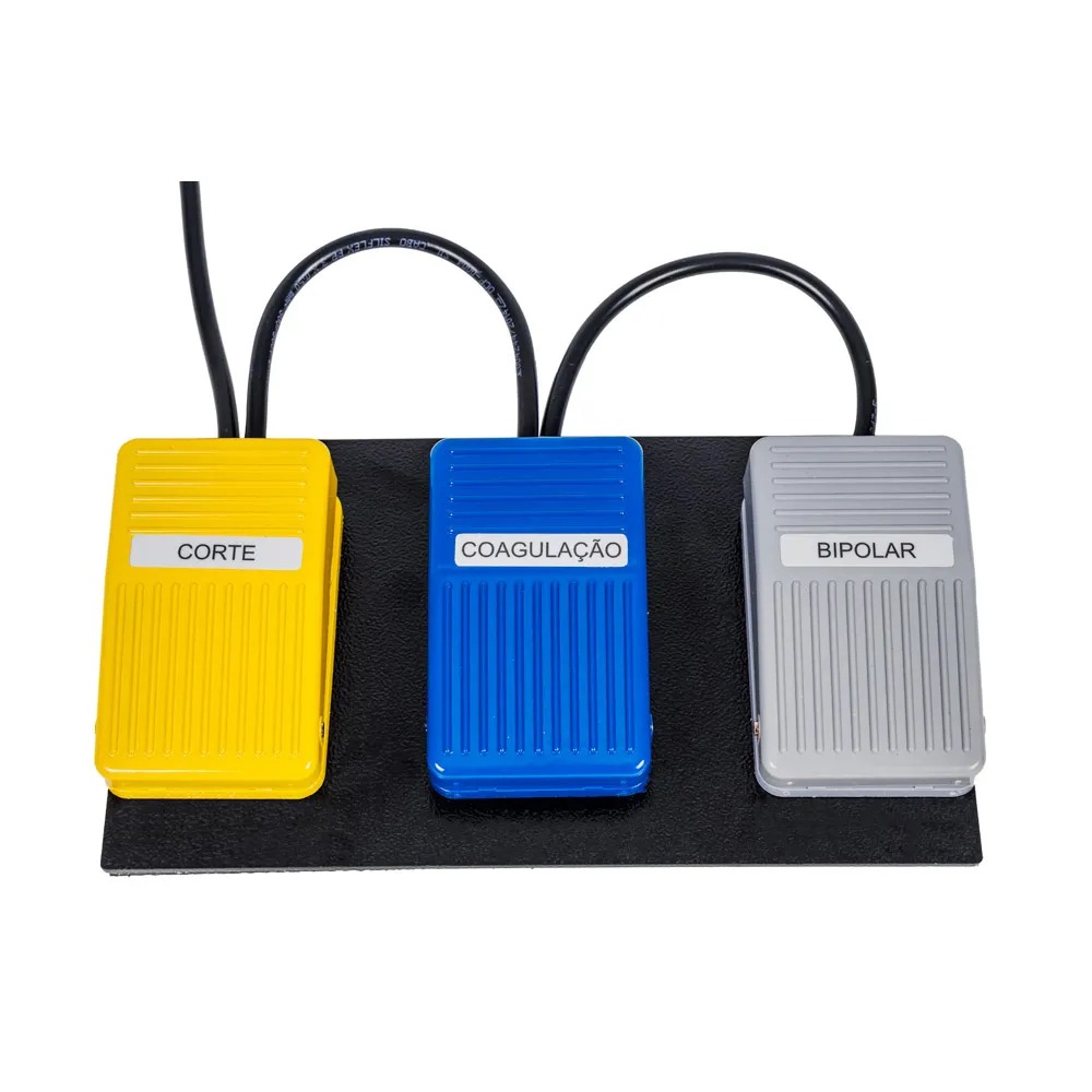 Descrição:Pedal com 3 alavancas com finalidade para Corte, Coagulação e Bipolar.