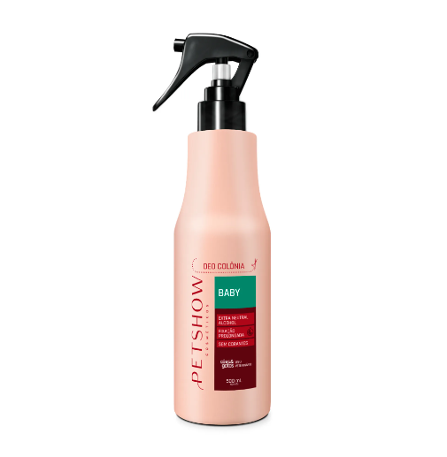 A colônia Baby da pet show foi especialmente desenvolvida para perfumar suavemente seu animal sem causar irritações na pele ou mucosas, proporcionando uma finalização especial após o banho. A inspiração olfativa talco é um perfume amadeirado floral almiscarado compartilhável que foi lançado em 2008. A fragrância contém Almiscar, Íris, Ylang Ylang, Baunilha, Laranja e Rosa