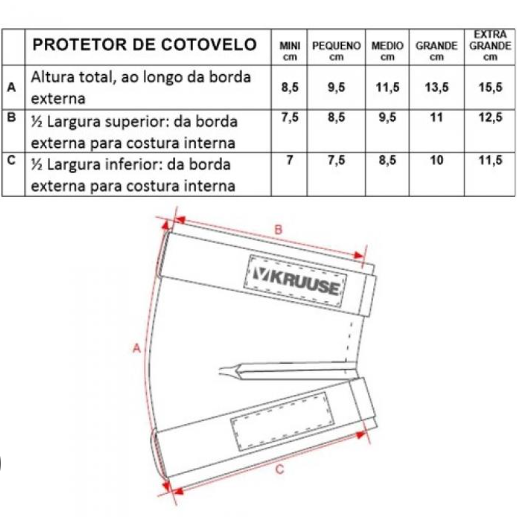 O protetor de cotovelo é fixado acima e abaixo da articulação com o auxílio de duas bandas de velcro. As faixas são distrubuidas no protetor de modo que ele não deslize para baixo da perna.