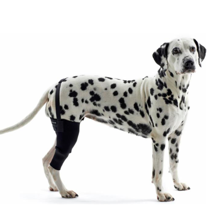 O protetor de joelho ajuda os cães com claudicação e dores na articulação do joelho e cria uma qualidade de vida muito melhor para o cão. O protetor possui dois elástico com efeito estabilizador. Quando há danos ligamento cruzado o cão utiliza o protetor para diminuir a dor proteger a articulação.