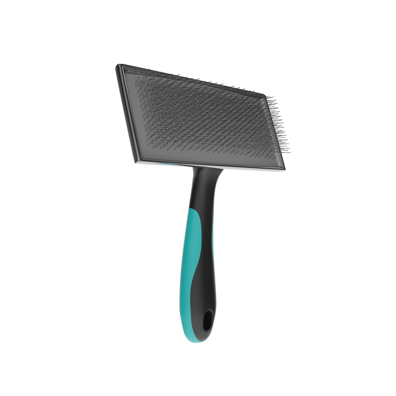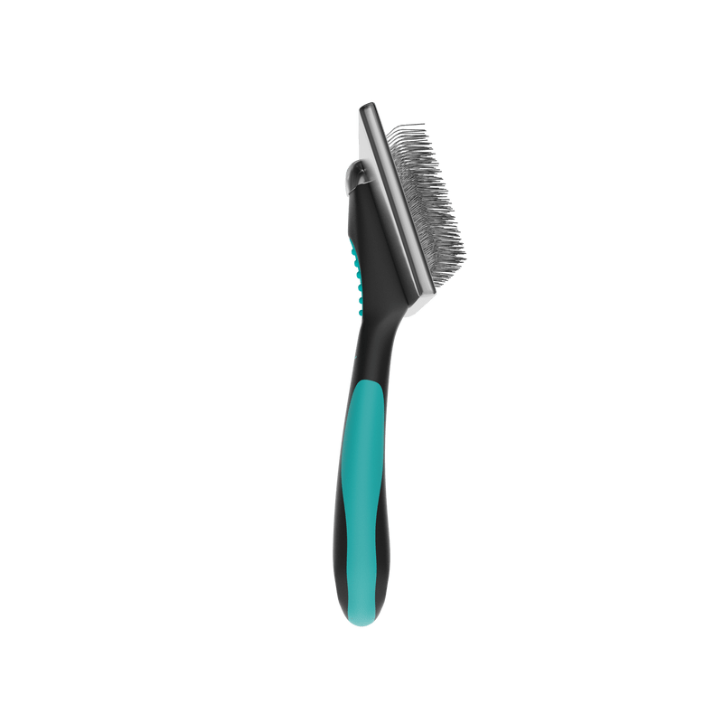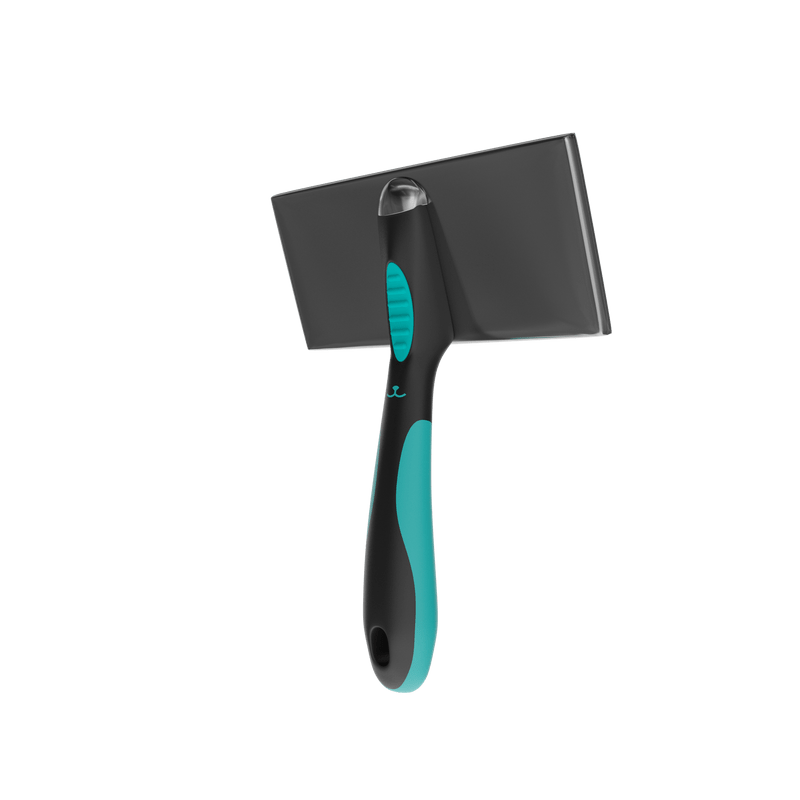 Considerada a rasqueadeira mais utilizada em Banho e Tosa, seu material é de plástico ABS, sendo considerado muito mais resistente, leve, flexível e com isolante elétrico.